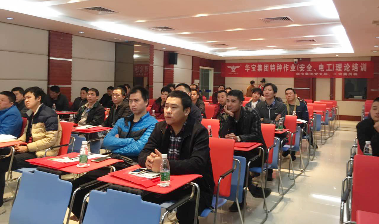 2018年1月20日,在華寶集團多功能媒體廳,集團開展了為期一天的特種作業(安全、電工)理論培訓。培訓對象為華寶集團各廠的特種作業電工人員。 此次培訓課由省級安全生產培訓機構泉州市海都人力資源培訓中心主持召開,學員培訓后,經泉州市安監局考試合格后,福建省安全生產監督管理局將按規定核發《中華人民共和國特種作業操作證》,證件全國通用。