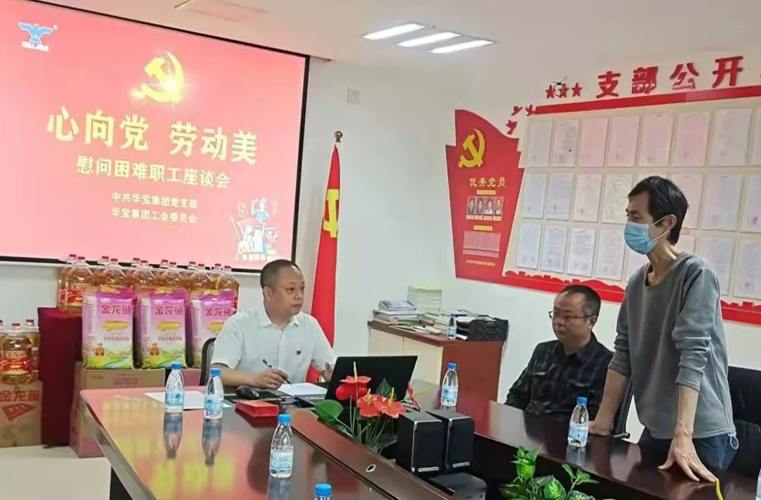 2022年4月29日,在中國第72個勞動節即將到來之際,華寶集團黨支部和工會隆重舉行了慰問困難職工和表彰“抗疫先鋒”活動,以關懷和致敬一線員工,激發勞動最光榮熱情,集團黨支部書記、工會主席師體偉主持了活動。