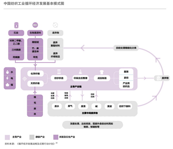 在日益高漲的可持續發展呼聲和行業亟需新發展機遇的雙重驅動下,時尚產業正在重新思考紡織服裝制造、消費和處理的方式。循環時尚是不同利益相關方為實現產業可持續發展正在積極推進的產業系統解決方案——按照循環經濟的原則,讓纖維、紡織品和服裝在設計、生產、使用和循環的過程中發揮最大價值,減少資源的消耗和廢棄物的產生,重塑更負責任、更具韌性的產業未來。 中國自“十一五”期間開始大力推動循環經濟。在國家循環發展戰略的引領下,中國紡織服裝行業循環轉型取得了階段性進展,并初步形成了自身循環發展的基本特征。原材料結構優化、制造環節資源利用率提升、廢舊紡織品回收再利用是行業循環實踐的三大重點領域。